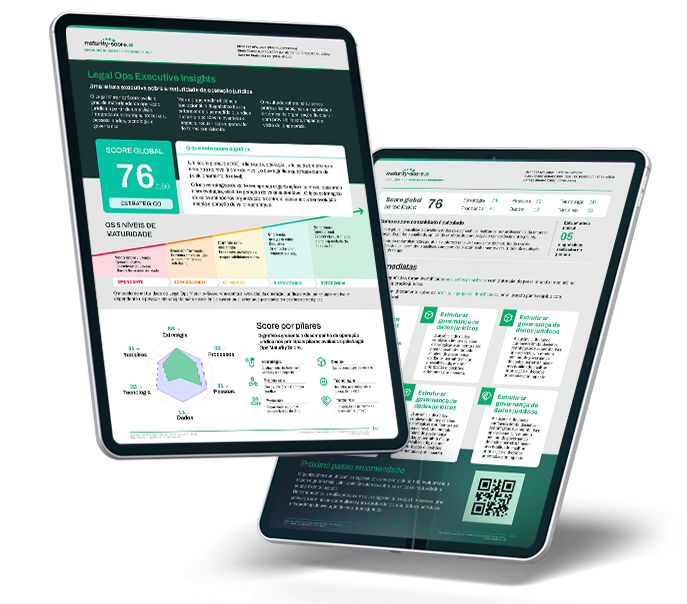 Descubra sua maturidade, identifique oportunidades prioritárias e acelere sua evolução rumo a uma operação jurídica mais inteligente, eficiente e estratégica.